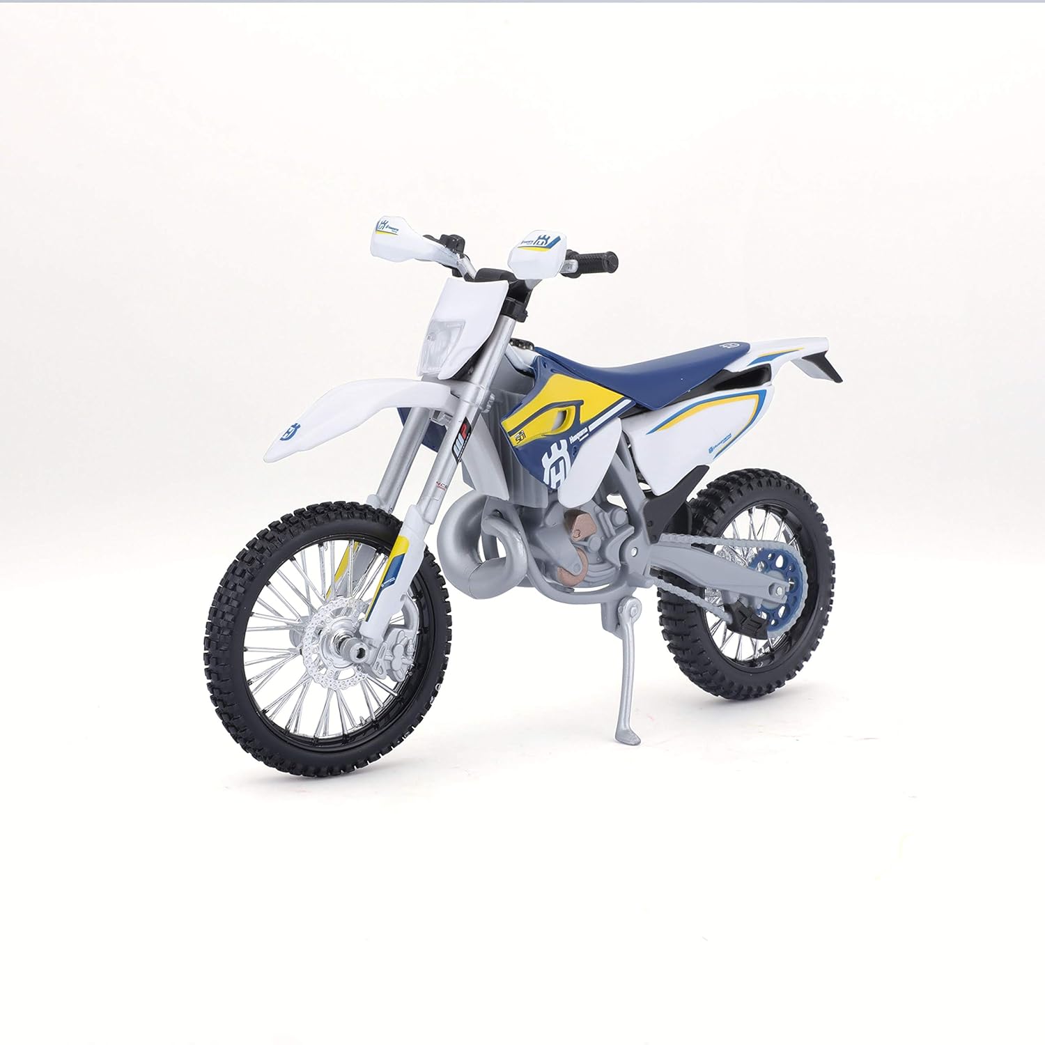 Moto miniature à l’échelle 1/12 représentant la Husqvarna FE 501, dans une finition bleue et blanche de la gamme Special Edition. Elle convient aux enfants et aux collectionneurs qui recherchent une reproduction réduite pour le jeu ou l’exposition. Cette reproduction est signée Maisto.