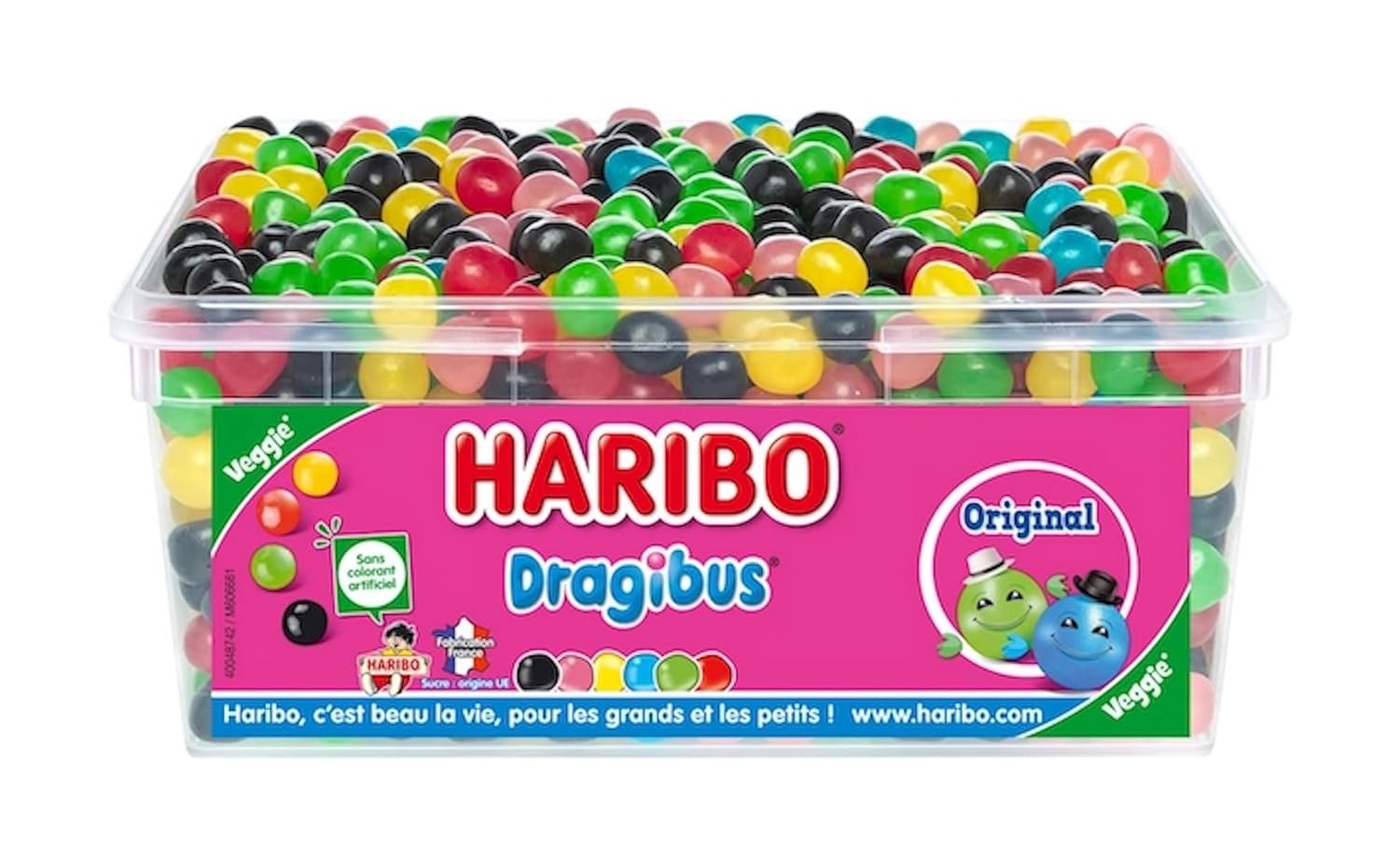 HARIBO Dragibus — Bonbons sans gélatine, sachet vrac 1,1 kg