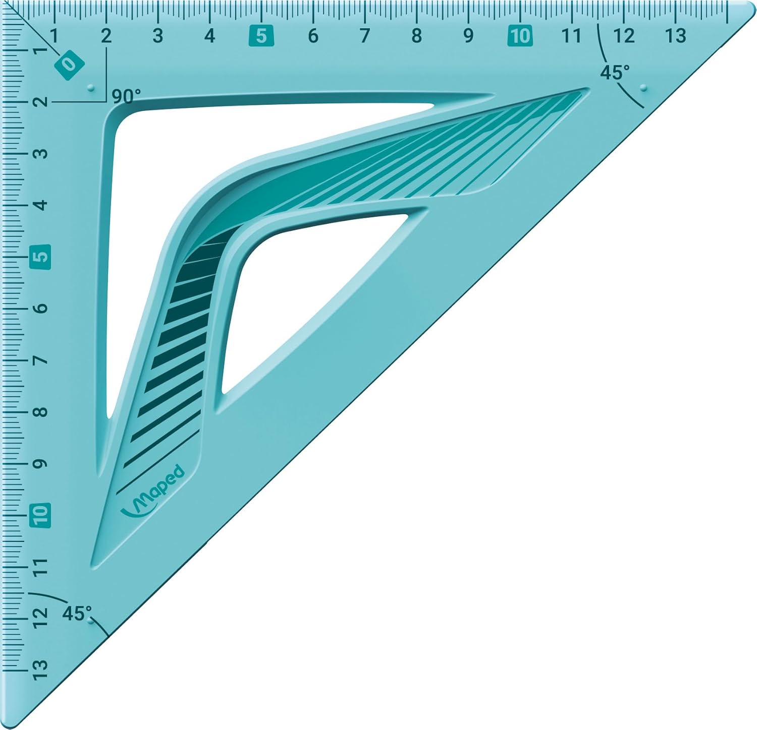 Équerre à 45° en plastique flexible conçue pour le traçage et les mesures en géométrie. Elle convient aux élèves, étudiants et à un usage scolaire ou bureautique. Hypoténuse de 21 cm, avec conception incassable.