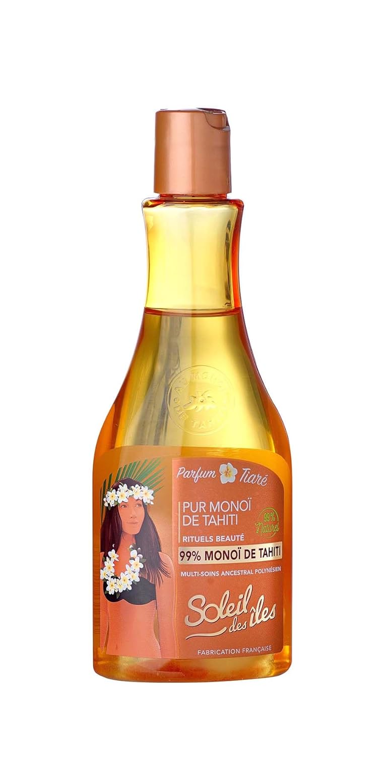 Ce soin au pur monoï de Tahiti AO à 99 % s’utilise sur les cheveux et le corps pour protéger, nourrir et hydrater. Il convient aux personnes qui recherchent un soin parfumé au tiaré pour l’usage quotidien. Sa formule contient un extrait végétal 100 % naturel, sans paraben, et il est fabriqué en France.