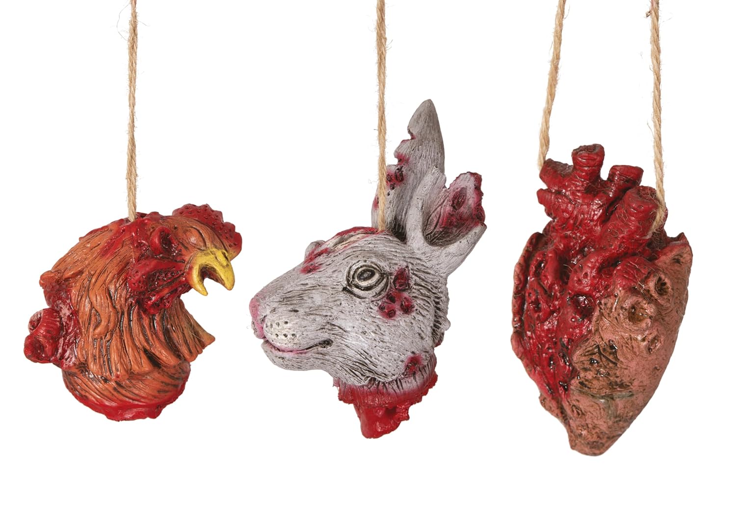 Décoration d’Halloween à suspendre, avec modèle aléatoire : vous recevez une tête d’animal ou un cœur pour créer une ambiance horrifique. Idéale pour une fête, une maison hantée ou une mise en scène effrayante, elle convient à tous ceux qui veulent renforcer l’atmosphère de leur décoration. Chaque modèle présente des détails réalistes pour un rendu visuel angoissant.
