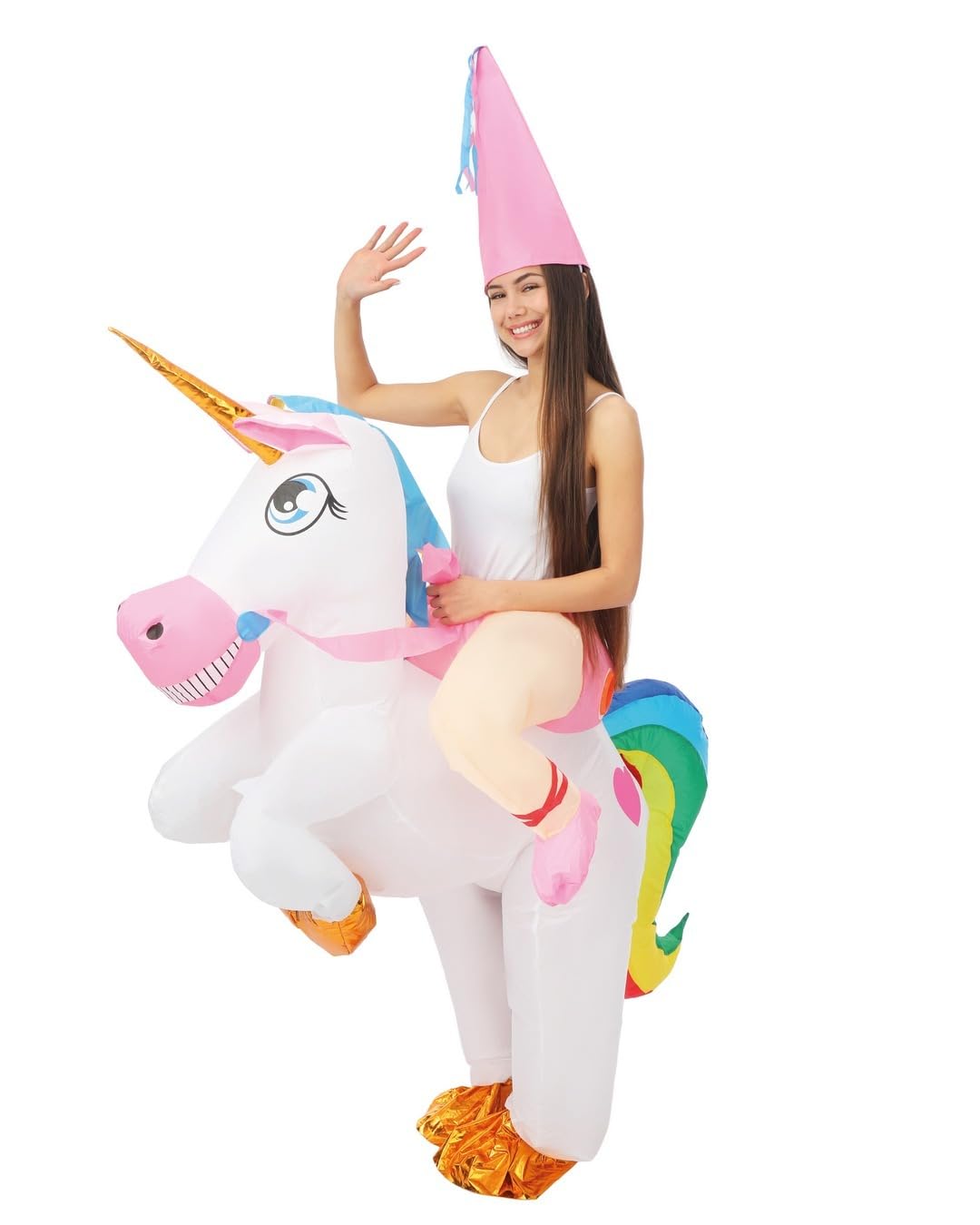 Ce déguisement gonflable pour adulte crée un effet visuel “assis sur la licorne” immédiatement reconnaissable. Il convient pour les fêtes, carnavals, soirées déguisées et animations où l’on veut un costume amusant et facile à repérer. Le gonflage se fait en quelques secondes avec le ventilateur inclus, alimenté par 4 piles AA non fournies.