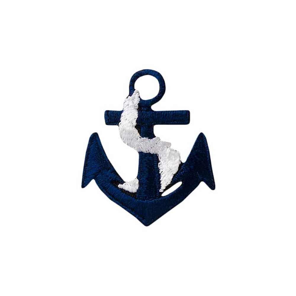 Ancre thermocollante petit modèle en bleu et blanc, conçue pour des applications textiles en mode et décoration intérieure. Elle convient pour fixer ou renforcer discrètement des éléments sur tissu, dans un usage de couture, customisation ou réparation.