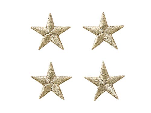 Lot de 4 écussons thermocollants à motif étoile, conçus pour être appliqués sur textile. Ils conviennent pour personnaliser ou réparer des vêtements et accessoires en tissu. Chaque écusson mesure environ 1,7 cm et présente une finition argentée.