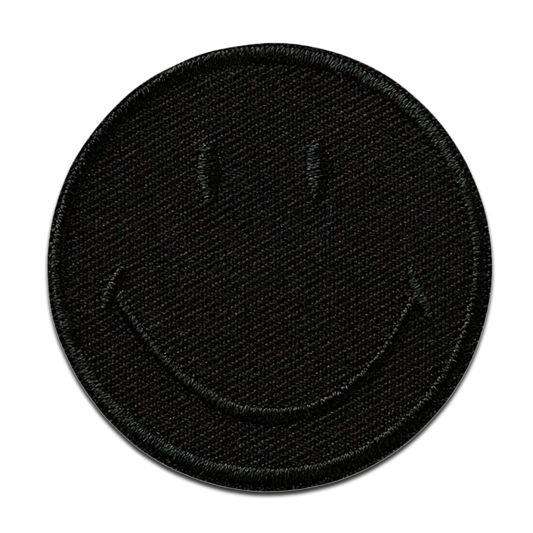 Patch thermocollant brodé en forme de smiley noir, à appliquer sur un vêtement ou un accessoire textile. Il convient pour personnaliser une pièce, masquer une petite usure ou ajouter une touche décorative. Format 5 x 5 cm.