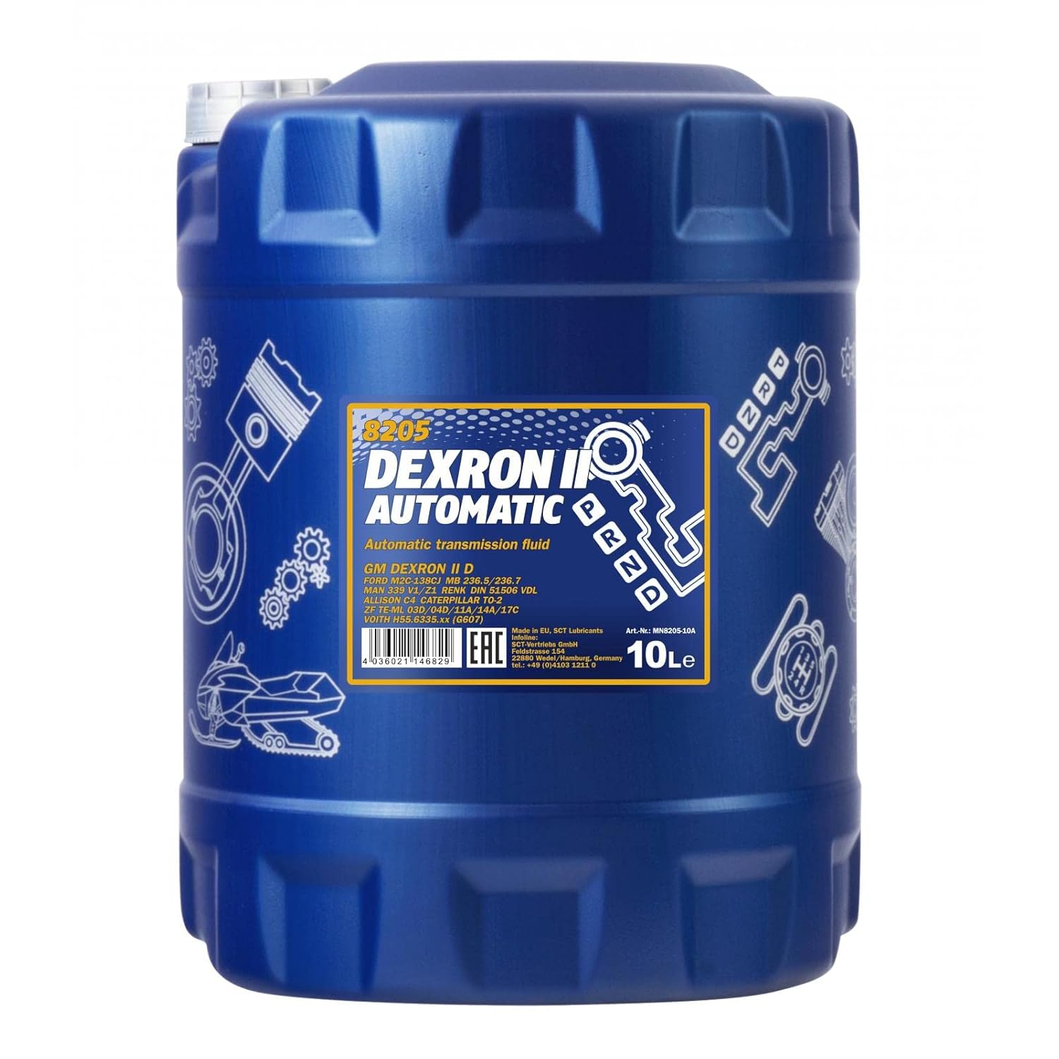 Huile de transmission automatique ATF Dexron II en bidon de 10 litres, conçue pour les boîtes automatiques nécessitant cette spécification. Elle convient à l’entretien ou au remplissage des transmissions automatiques compatibles, en usage automobile. Format : 10 L.