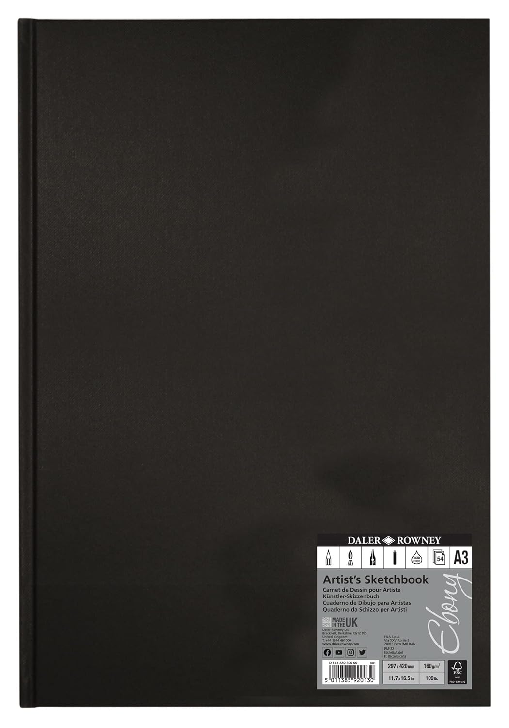 DALER ROWNEY Ebony — Carnet de croquis A3 48 feuilles 150 g/m²