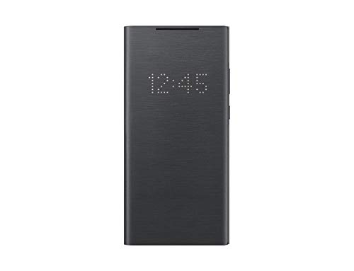 Étui de protection noir avec affichage LED intégré sur le rabat pour consulter certaines informations sans ouvrir la coque. Conçu pour le Samsung Galaxy Note20, il convient à l’utilisateur qui souhaite protéger son smartphone tout en gardant un accès visuel rapide aux notifications.