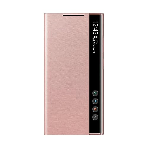 Coque de protection à rabat conçue pour le Samsung Galaxy Note20 Ultra, avec finition bronze et fenêtre Clear View en façade. Elle convient aux utilisateurs qui veulent protéger leur smartphone tout en gardant un accès rapide aux informations essentielles sans ouvrir l’étui.