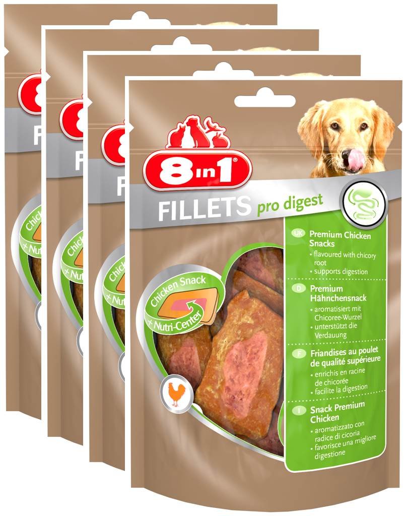 8in1 Fillet Pro Digest Friandises pour chiens adultes et seniors de grandes races – Favorise la santé digestive – Au poulet – Lot de 4 x 80g