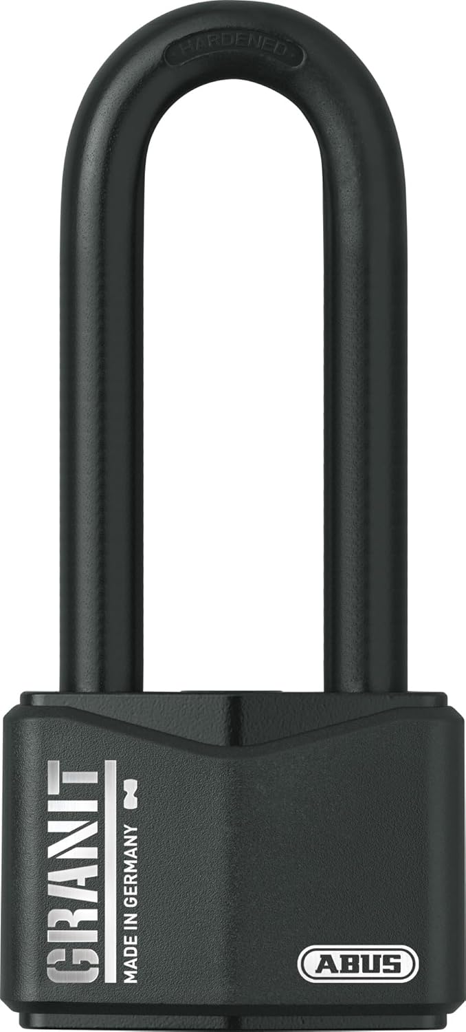 ABUS Cadenas Granit 37/55HB100 à anse haute – pour une utilisation en extérieur – en acier spécial trempé – clé avec lumière LED – niveau de sécurité ABUS 10 – noir