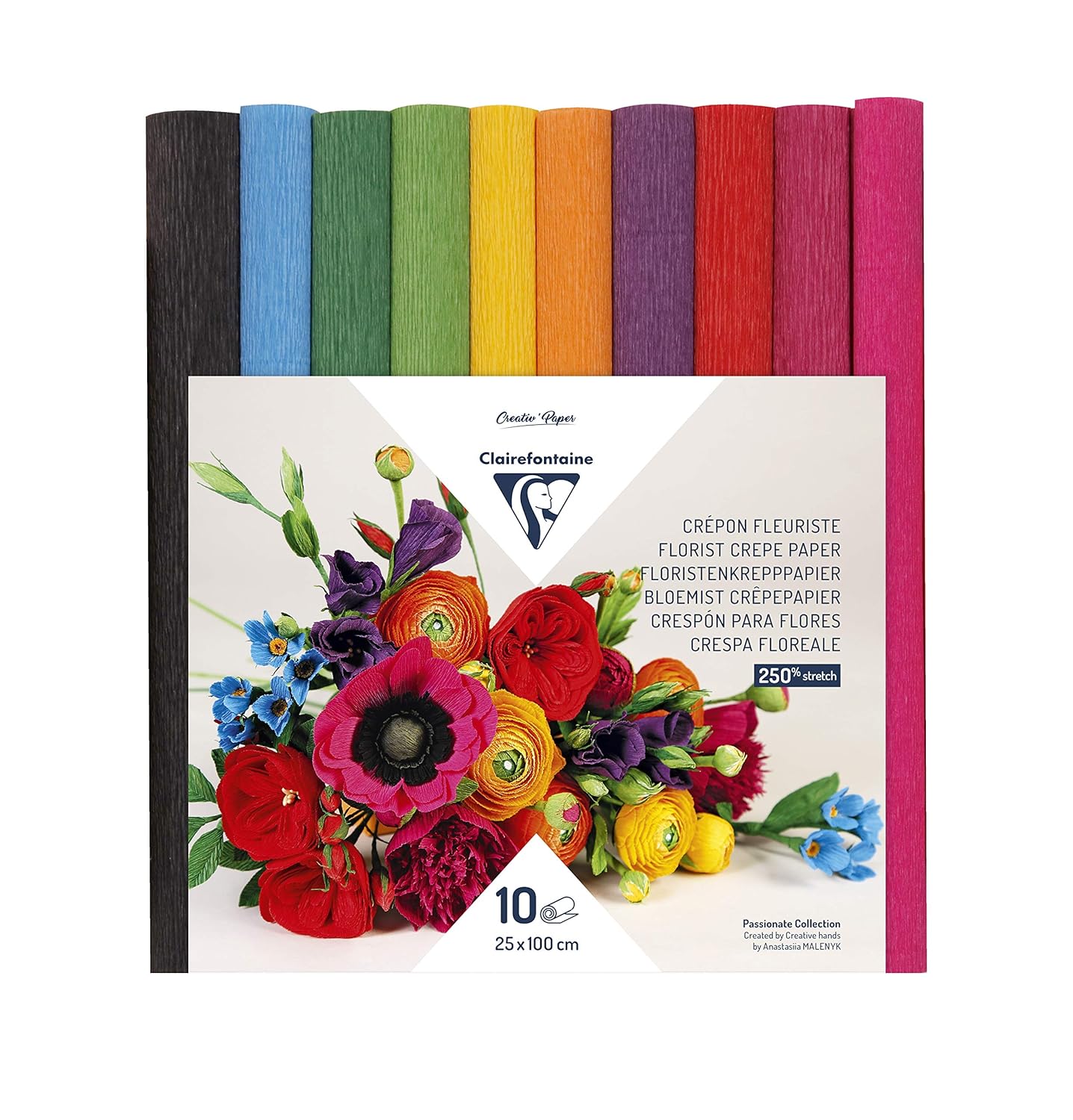Assortiment de papiers crépon fleuriste – Vifs – 10 rouleaux de 25 x 100 cm