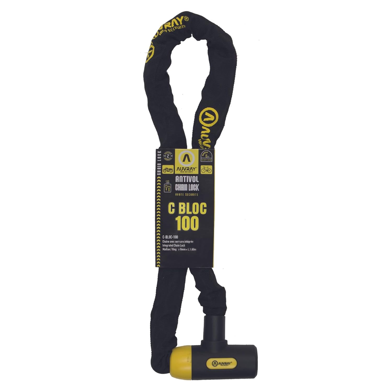 AUVRAY – Antivol vélo chaine avec serrure intégrée – CHAINE 100 D.8 Non Hom. Serrure intégrée C-BLOC-100-Résistance Maximale-Vérrouillage simplifiée-Protection nylon-Haute sécurité-Non homologué