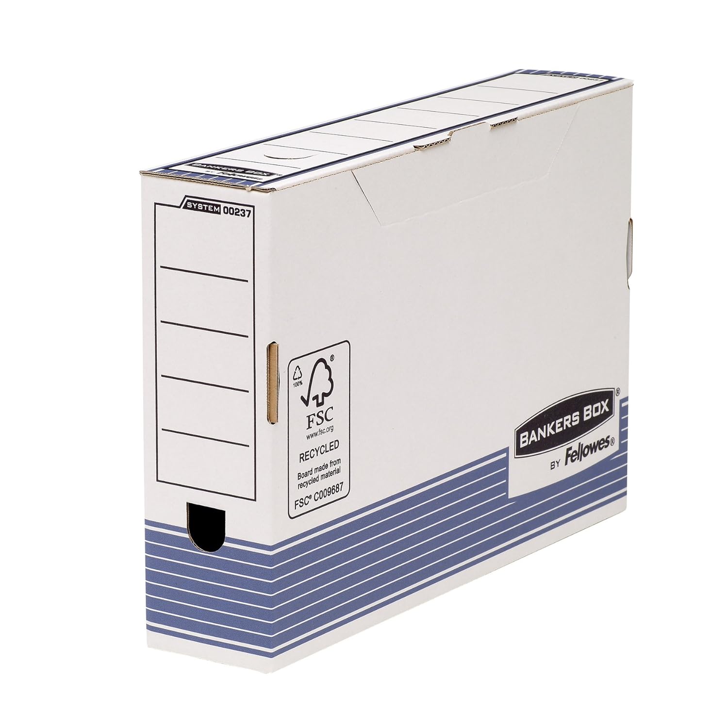 BANKERS BOX Fellowes Boîte d’archives System format folio – Montage automatique Dos de 8cm Bleu/Blanc Lot de 10-0023701