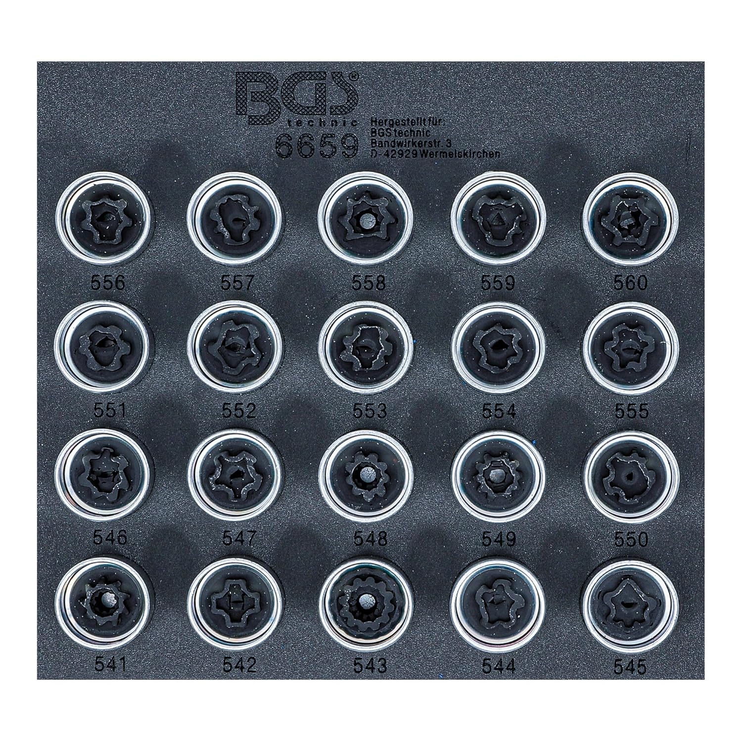 BGS 6659 | Insert de servante d’atelier 1/6 : Jeu d’outils pour écrous antivol pour VAG | 20 pièces