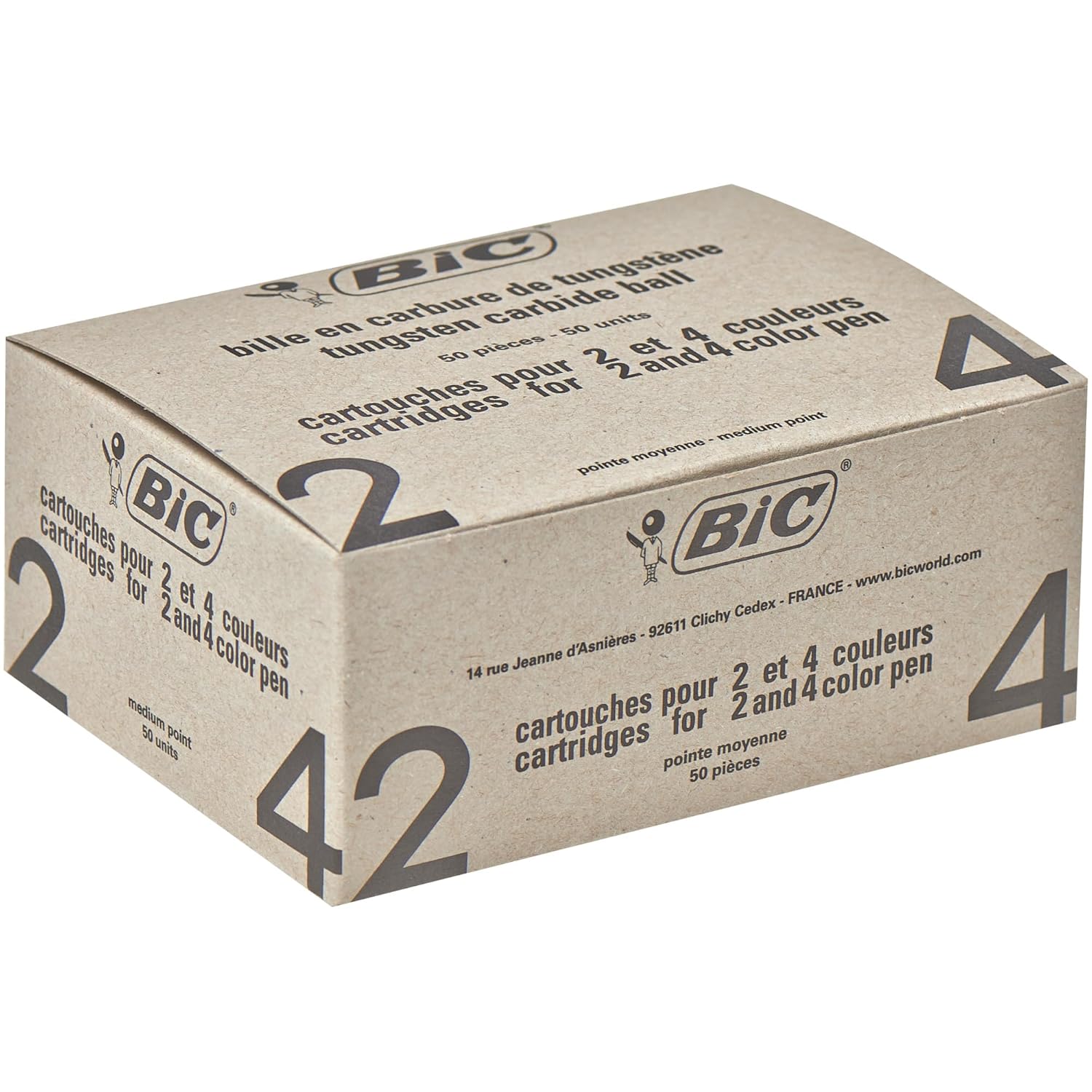BIC 4 Couleurs – Recharges pour Stylo-Bille – Pointe Moyenne (1,0 mm) – Encre Verte, Lot Economique de 50