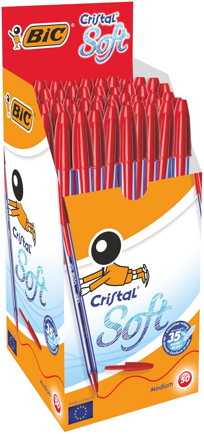 BIC Cristal Soft Stylos-Bille Pointe Moyenne (1,2 mm) – Écriture Douce et Fluide – Rouge, Boîte de 50