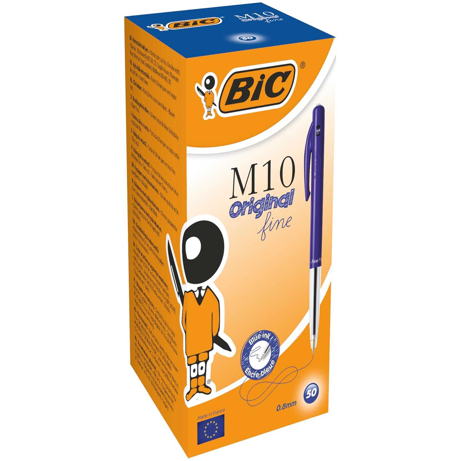 BIC Ecriture M10 Original Stylos-Bille Rétractables Pointe Fine (0,8 mm) – Encre De Couleur Bleue, Boîte de 50