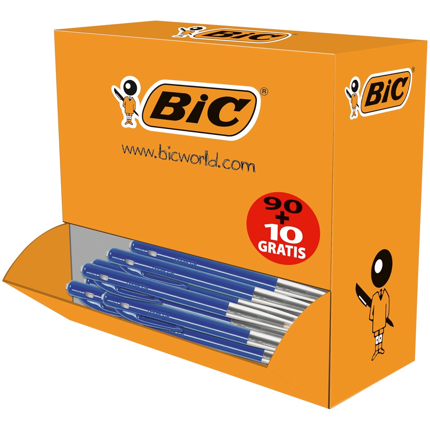 BIC M10 Original – Stylos-Bille Rétractables Pointe Moyenne (1,0 mm) – Encore de Couleur Bleue, Boîte de 90+10