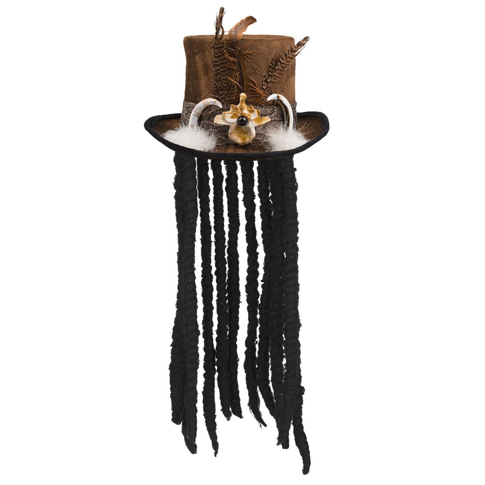 Boland 72183 Chapeau Voodoo Buluku avec cheveux, unisexe, taille unique, cylindre, avec boucles, ruban, application dentaire, application à plumes