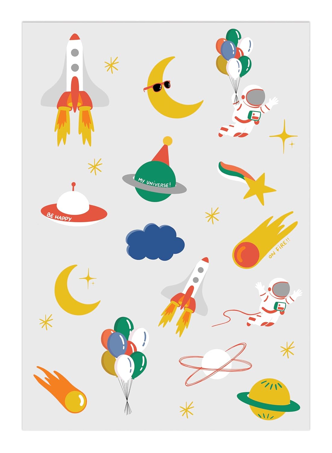 CAM ET LEON – Accessoires Décoration d’Anniversaire Enfant – Thème Espace – Assiettes, Serviettes, Confettis, Sachets, Cartes d’Invitation, Ballons (Faux tatouages)