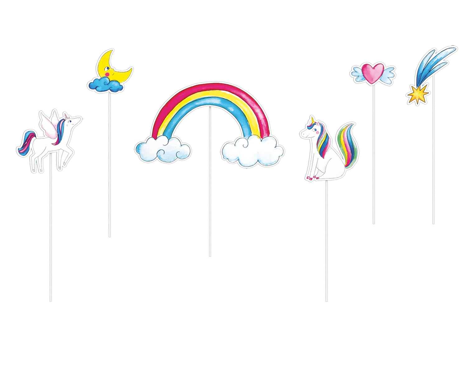CAM ET LEON – Accessoires Décoration d’Anniversaire Enfant – Thème Licornes – Assiettes, Gobelets, Serviettes, Confettis, Sachets, Cartes d’Invitation (Pique à gâteau x6)