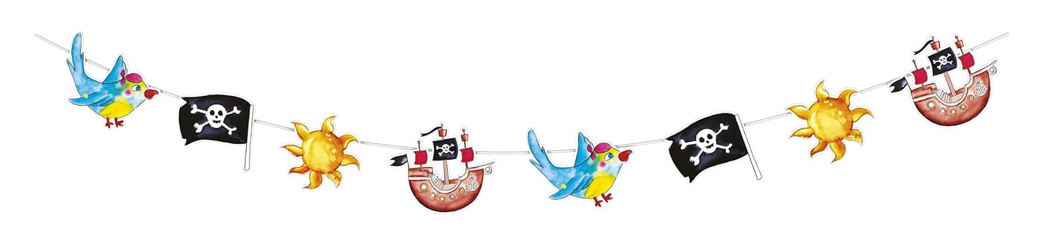 CAM ET Leon – Accessoires Décoration d’Anniversaire Enfant – Thème Pirates – Assiettes, Gobelets, Serviettes, Confettis, Sachets, Cartes d’Invitation (Guirlande – 3,6 m)