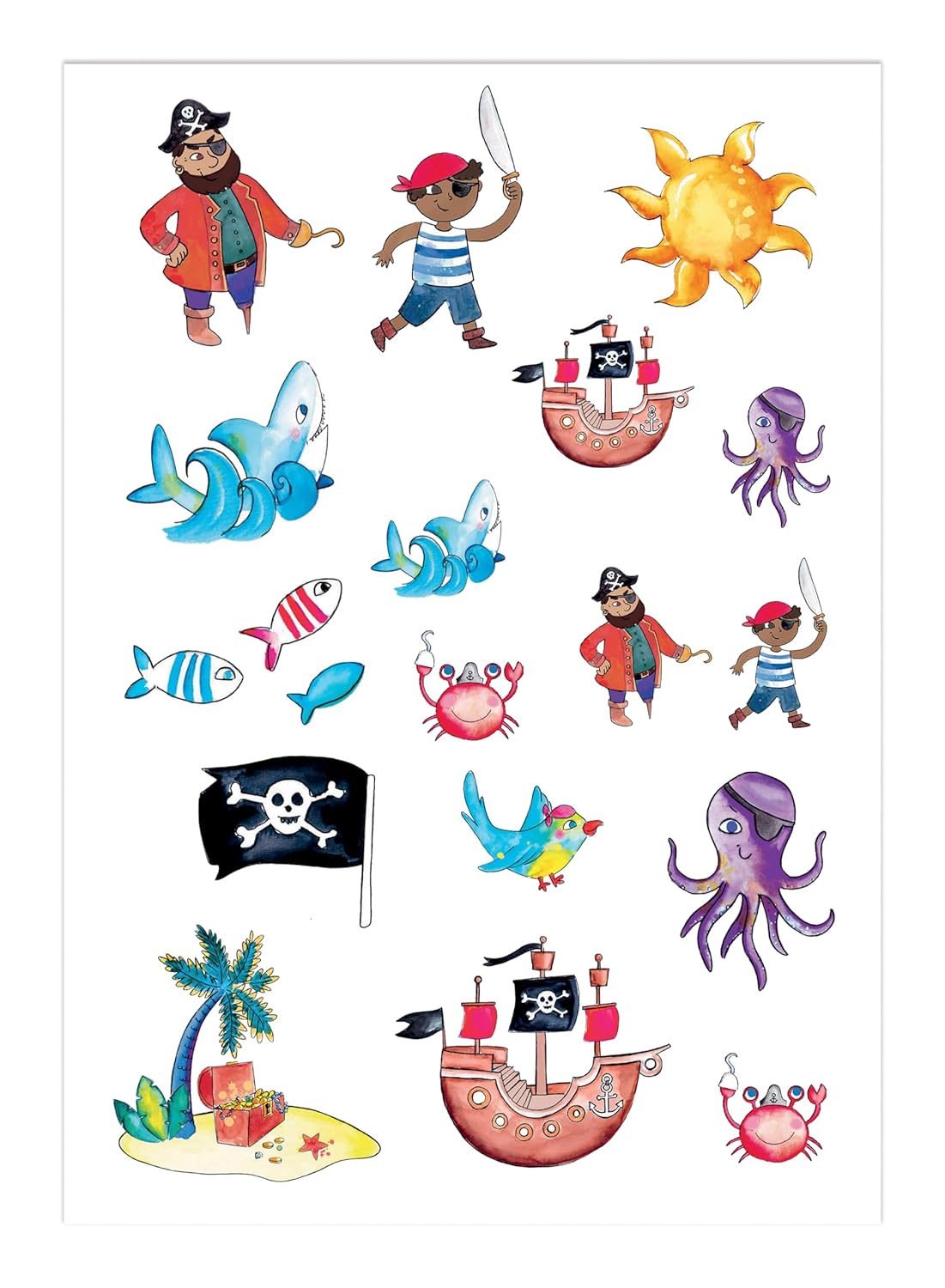 CAM ET LEON – Tatouages Temporaires – Tatouage Ephémère – Dinosaures, Animaux de la forêt, Licornes, Pirates, Princesses, Super héros – Anniversaire Enfant, Fêtes, Célébrations (Pirates)