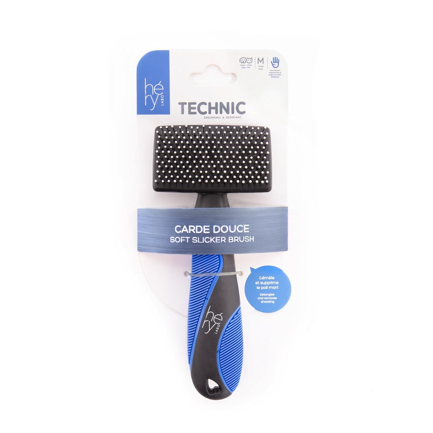 Carde Douce Héry Technic pour Chien et Chat – Brosse Démêlante, Supprime les Poils Morts, Picots Souples Confortables, Poils Mi-Longs et Longs