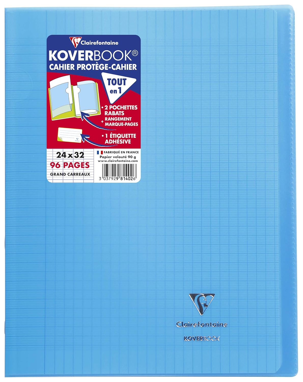 Clairefontaine 981402C Un Cahier Agrafé Koverbook Bleu – 24×32 cm 96 Pages Grands Carreaux Papier Blanc 90 g – Couverture Polypro
