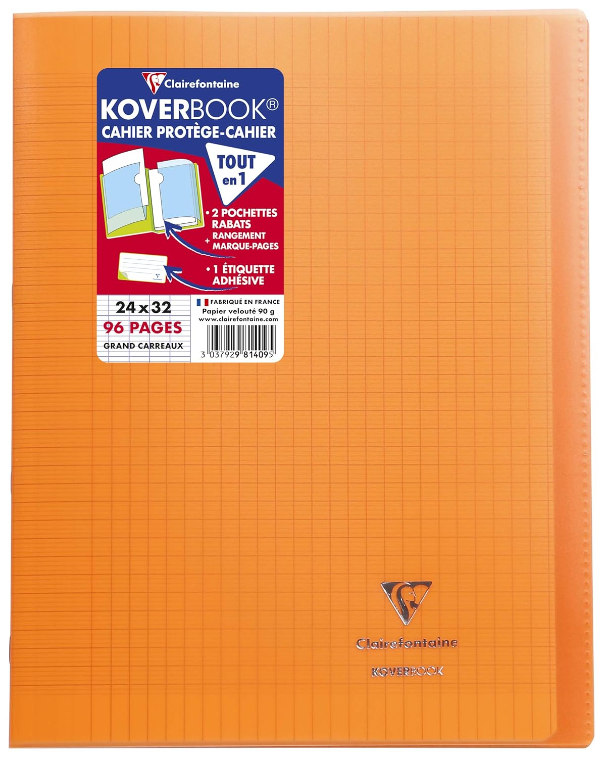Clairefontaine 981409C Un Cahier Agrafé Koverbook Orange – 24×32 cm 96 Pages Grands Carreaux Papier Blanc 90 g – Couverture Polypro