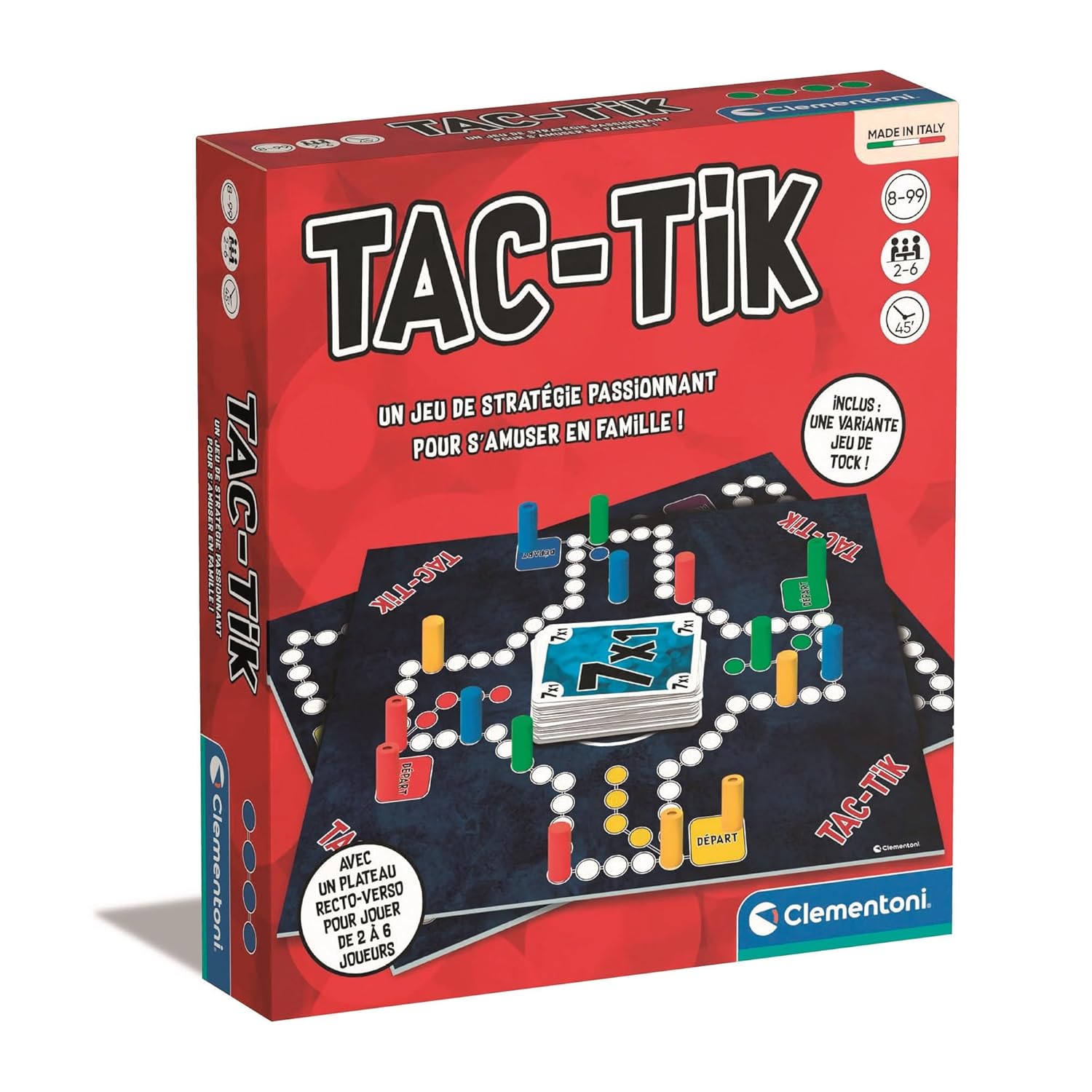 Clementoni Tac-TIK – Jeu DE SOCIÉTÉ Stratégie Familial dès 8 Ans | Pions et Cartes Tactiques | Amusement Garanti de 2 à 6 Joueurs pour des Parties Riches en Rebondissements et Réflexion