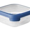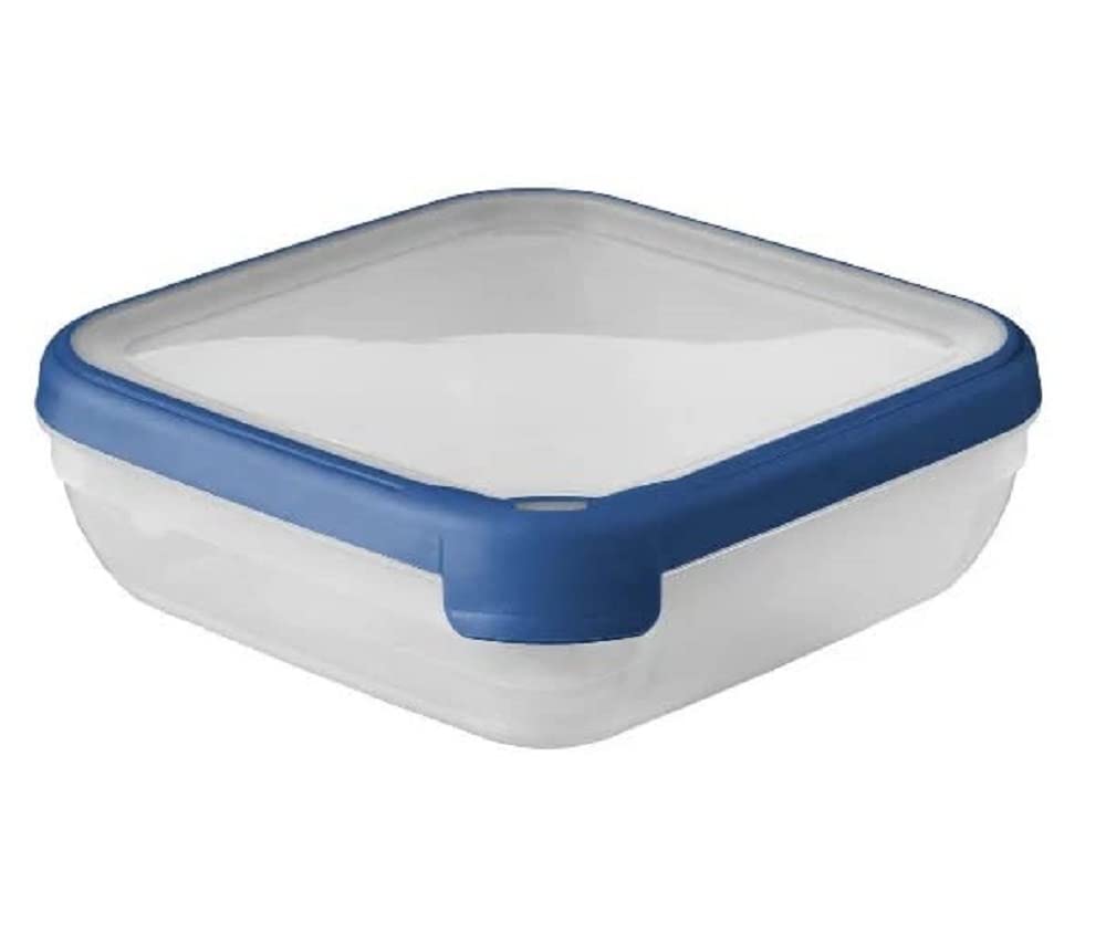 Curver Boîte alimentaire carrée multi usage 1,6L en polypropylène 100% recyclé, 20x20x6,5 cm, adapté au Micro-Ondes, Lave-Vaisselle, Congélateur- Bleu