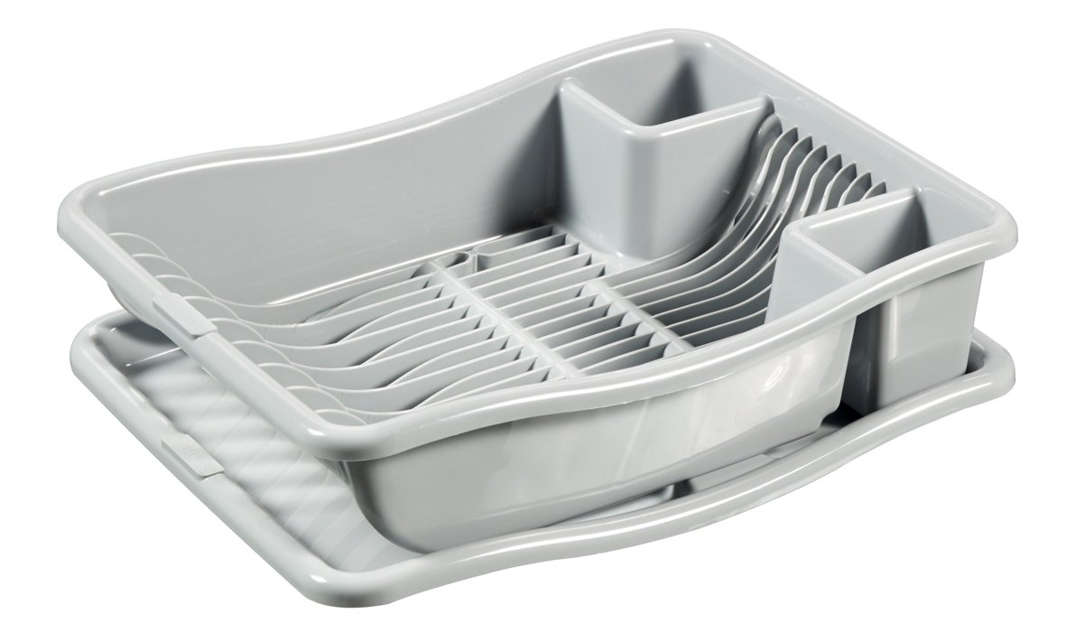 Curver Egouttoir à Vaisselle 18 Assiettes avec Plateau – 29 x 10,5 x 39 cm – Gris