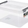 CURVER | handy box – Plus 115L + clips Gris +roues Avec Couvercle, Transparent, handy +, 80x50x39,4 cm
