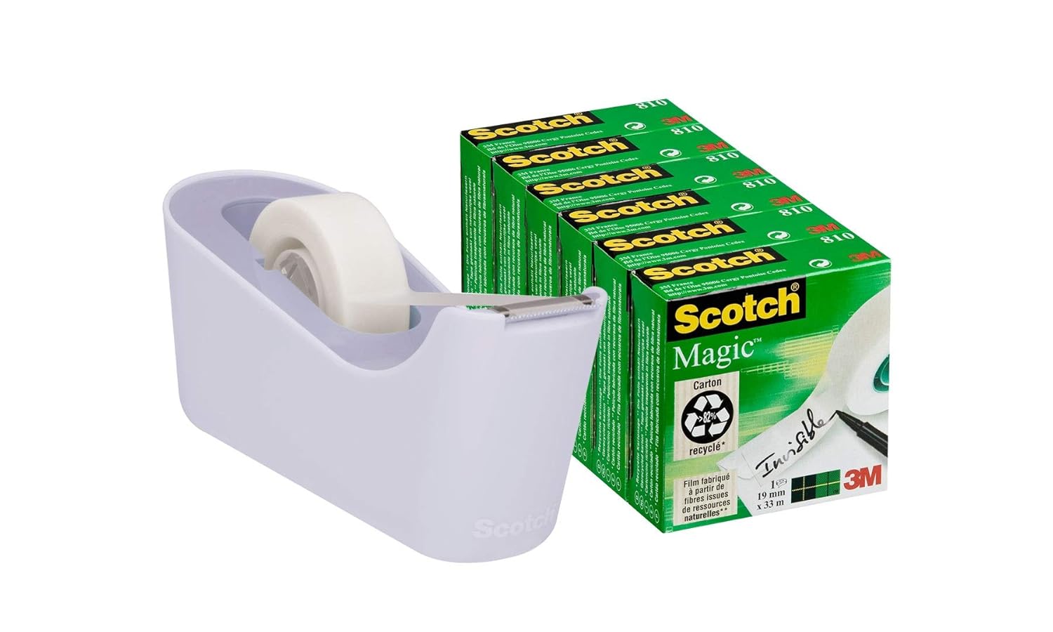 Devidoir Scotch C18 Lavande avec 6 rouleaux Scotch Magic 19 x 33 cm