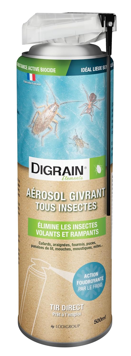 DIGRAIN Aérosol Givrant Tous Insectes – Sans Substance Active Biocide – Aérosol 500ml