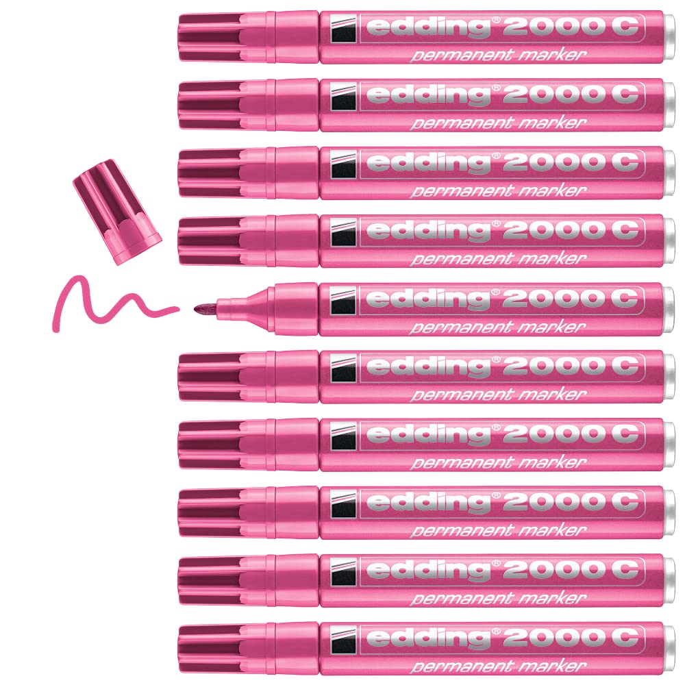 edding 2000 C Marqueur permanent – rose – 10 stylos – pointe ronde 1,5-3 mm – sèche vite – résiste à l’eau et à l’essuyage – pour carton, plastique, bois, métal – marqueur universel