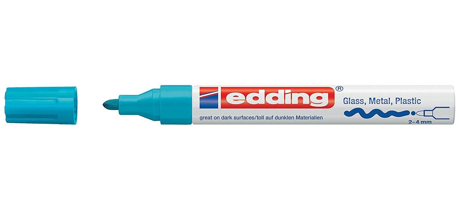 edding 750 Marqueur peinture brillante – bleu clair – 1 feutre peinture brillante – pointe ronde 2-4mm – pour dessin, coloriage, scrapbooking – étanche, très opaque