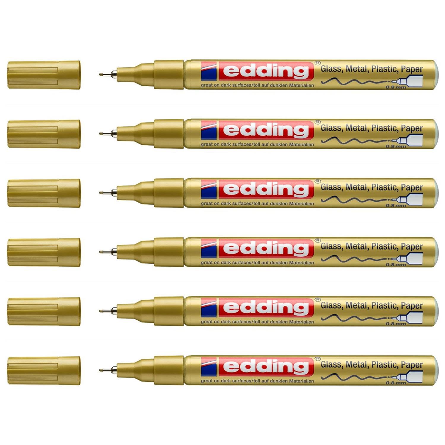 EDDING Lot de 6 Marqueurs Peinture brillante 780 Pointe Fine Or 0,8 mm