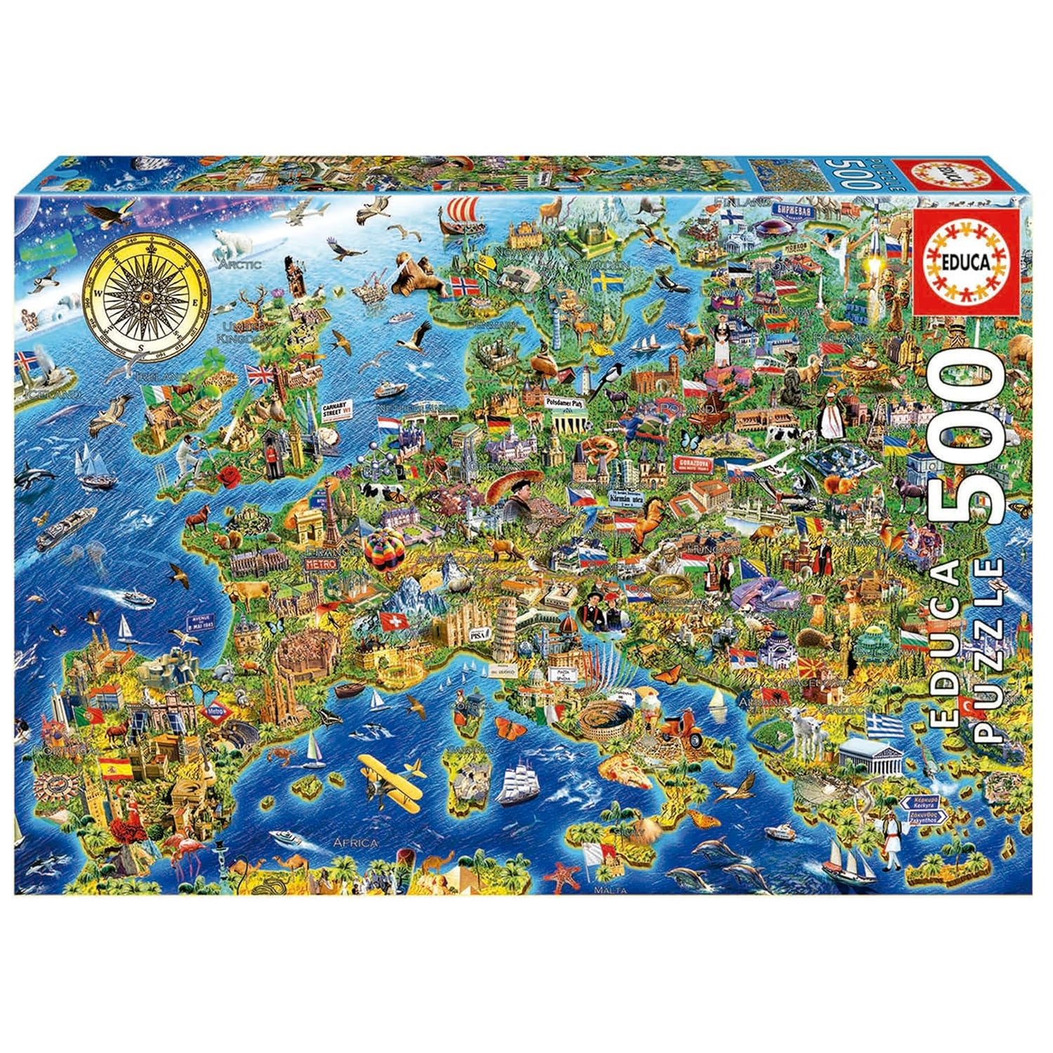 Educa – Puzzle de 500 pièces pour Enfants et Adultes | La Folle Carte d’europe | À partir de 11 Ans (17962)