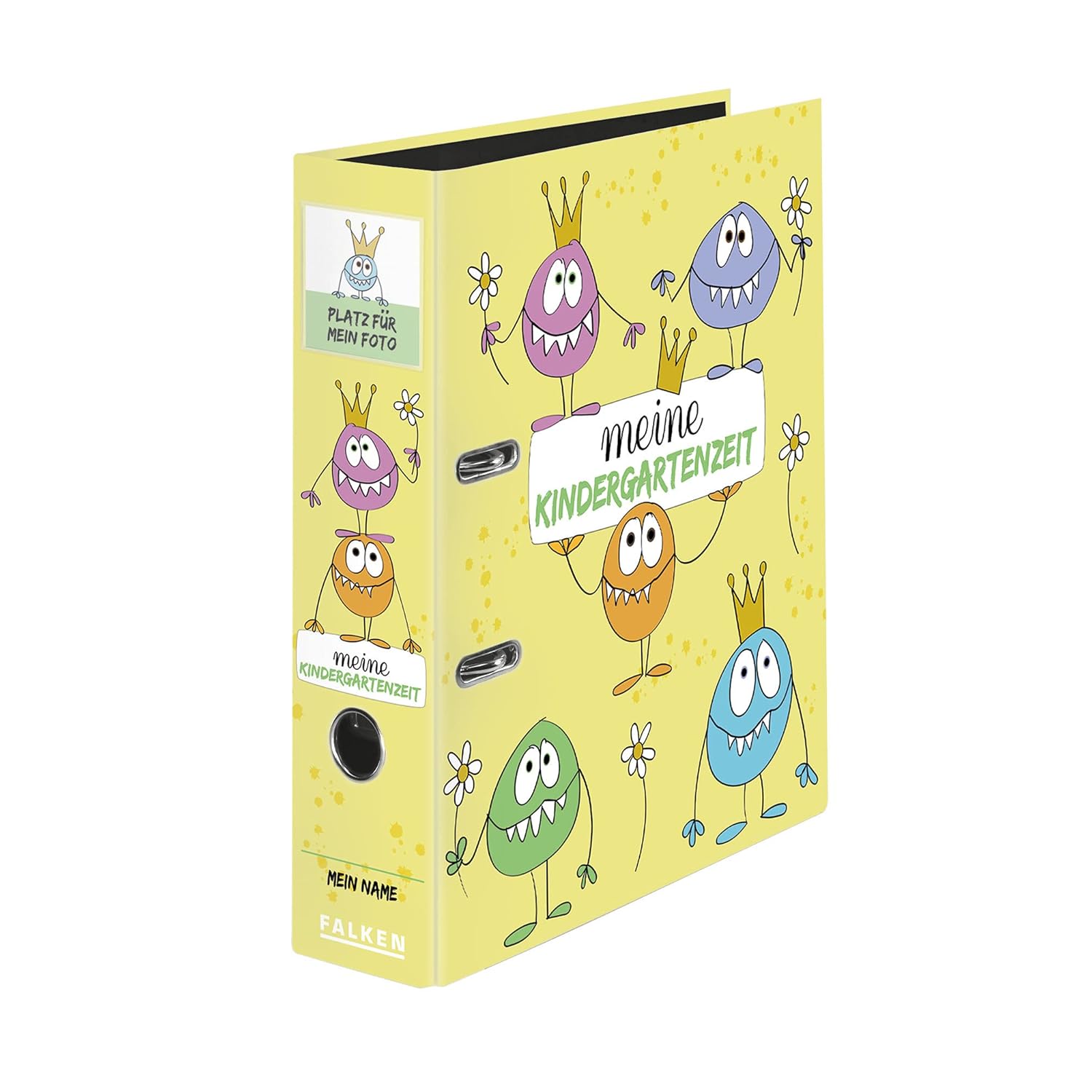 Falken Classeur pour maternelle avec pochette. Fabriqué en Allemagne. Largeur 8 cm, format A4, motif monstres