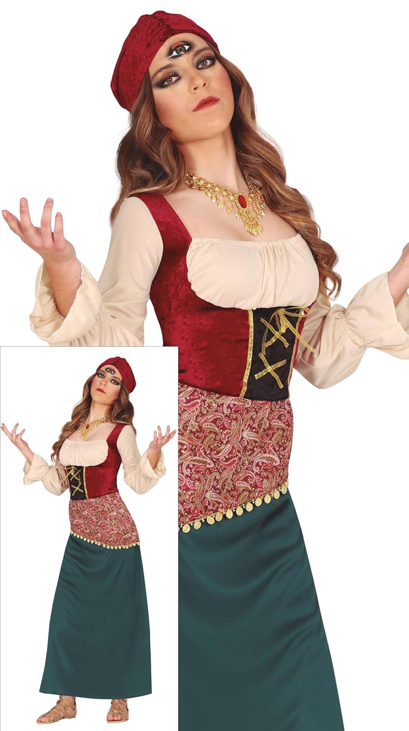 FIESTAS GUIRCA | Costume de Zíngara et Voyante (38-40/M) – Robe et Chapeau – Costumes pour Halloween, Carnaval et Fêtes Déguisées pour Adultes – Idéal pour Célébrations Mystiques et Ésotériques