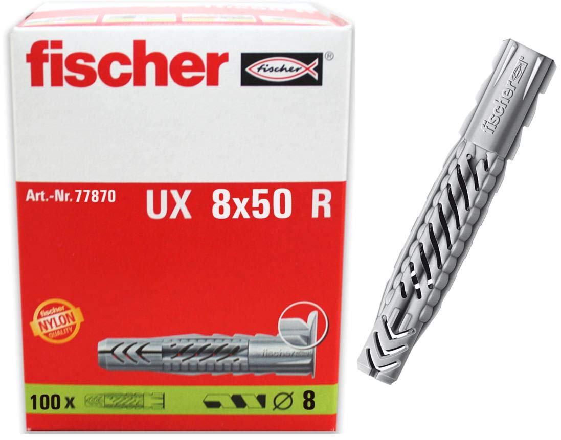 Fischer 077870 Lot de 100 chevilles en nylon UX 8 x 50 R