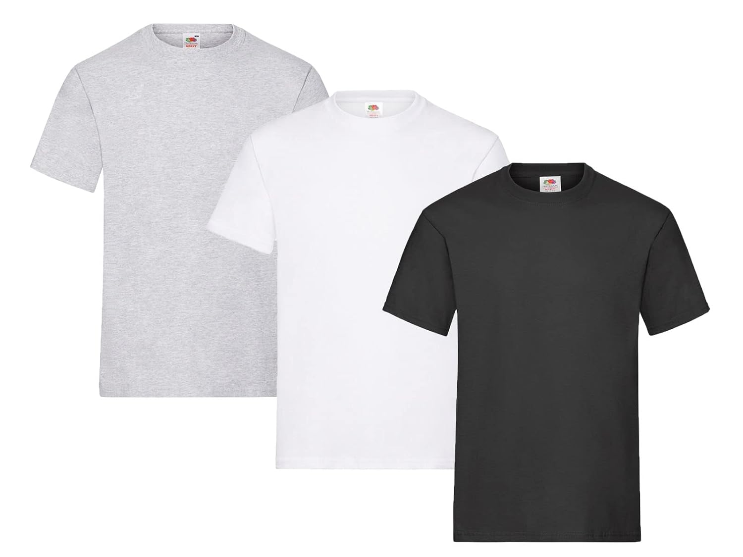 Fruit of the Loom Lot de 3 t-shirts pour homme Taille XL (1 x noir, 1 x blanc, 1 x gris) Avec 1 bloc-notes HL Kauf
