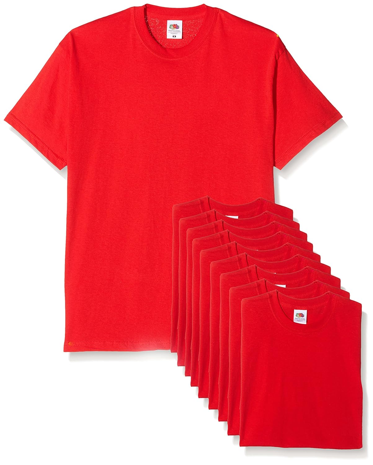 Fruit of the Loom Original T T-Shirt, Rouge, L (Lot de 10) Homme