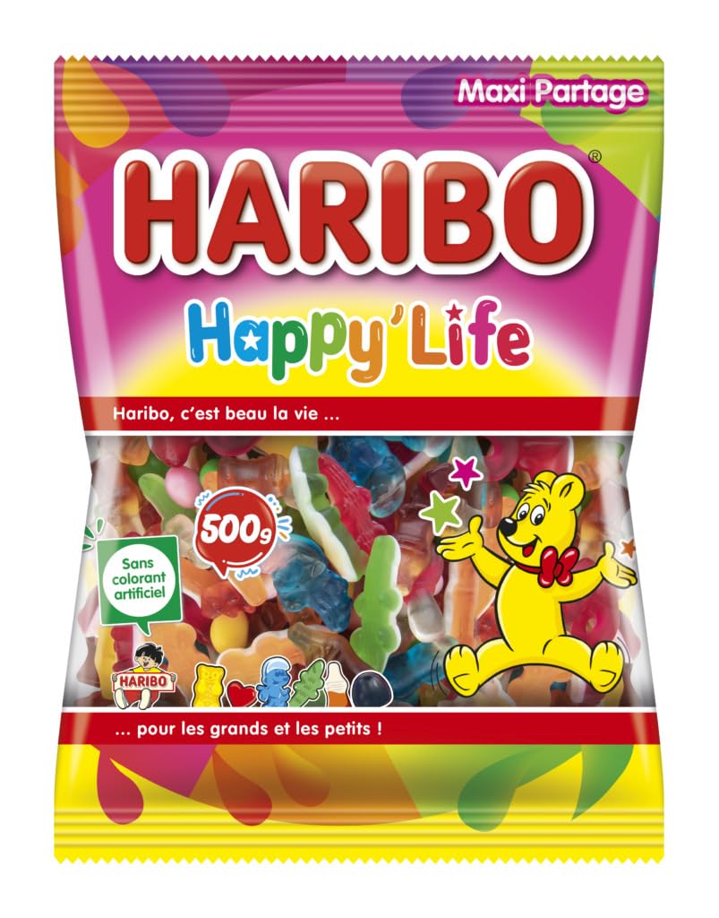 HARIBO – Happy Life – Assortiment De Bonbons Sans Colorants Artificiels – Sachet – 500 g