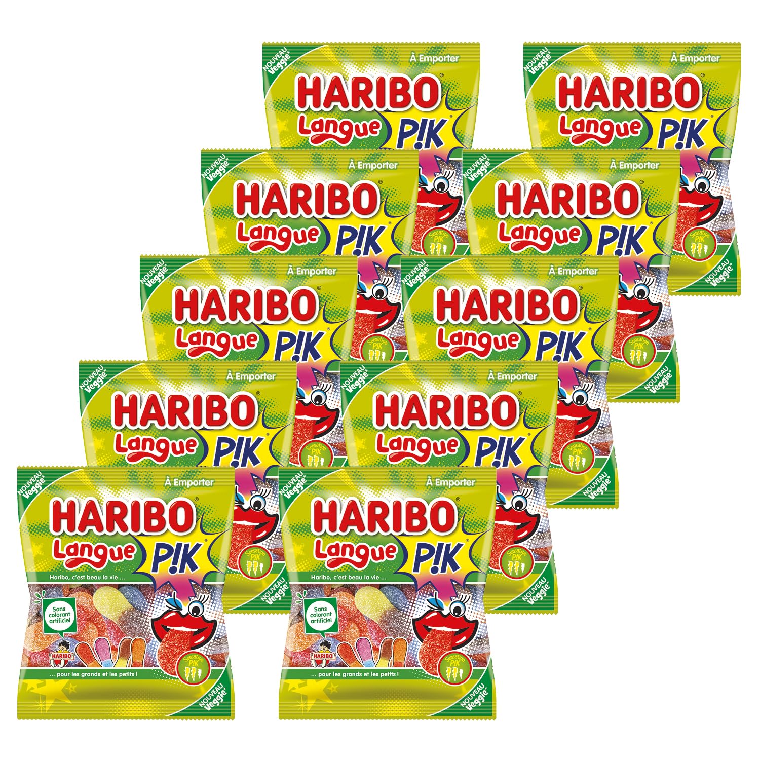 HARIBO – Langue Acide PIK – Bonbons Piquants – Sans Colorants Artificiels & Sans Gélatine – Sachets – 10 x 100 g