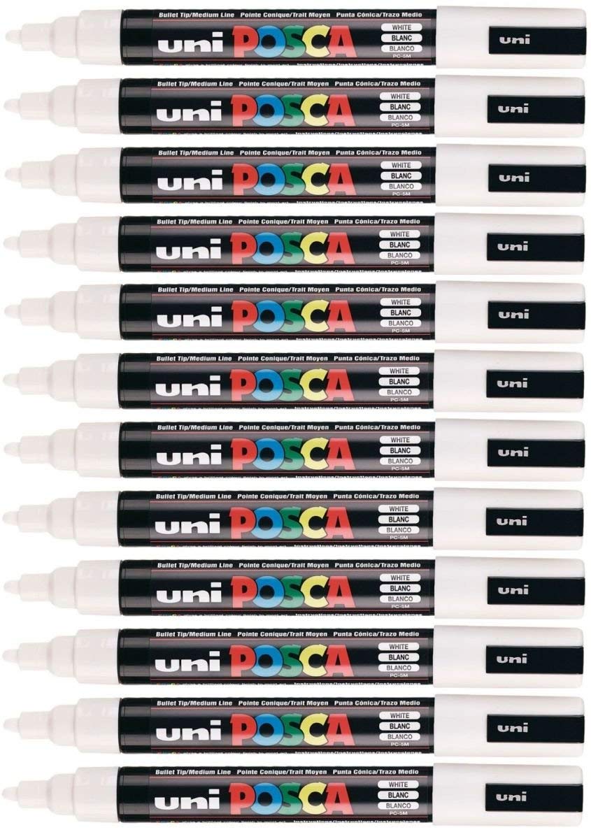 Lot de 12 marqueurs de peinture Uni Posca PC-5M à pointe ogive moyenne de 2,5 mm pour toutes surfaces en métal, bois, plastique, tissu, verre, pierre
