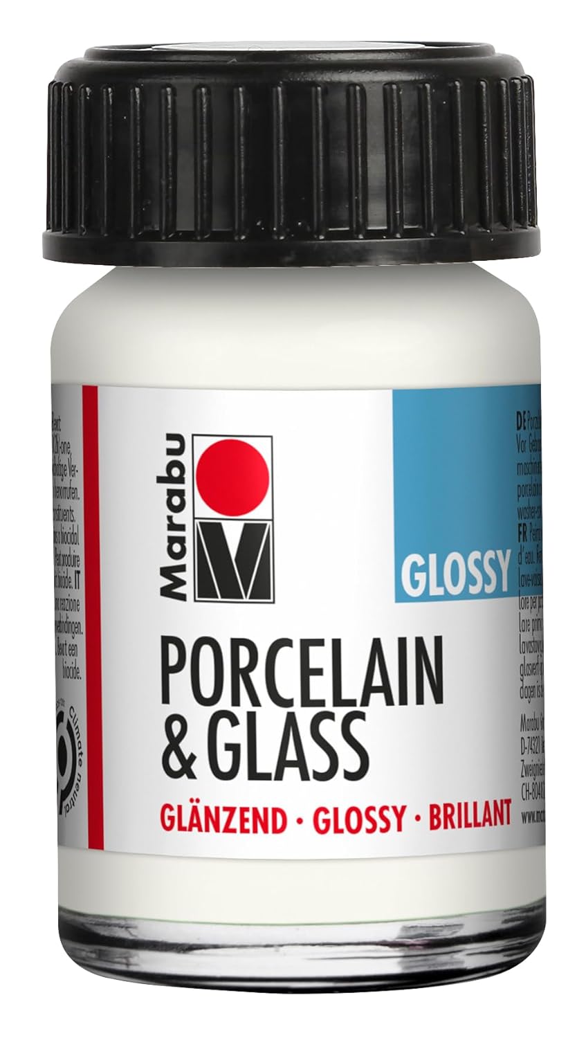 Marabu Peinture blanche brillante pour porcelaine, céramique et verre, 15 ml, pour peinture et estampage, à base d’eau, lavable, passe au lave-vaisselle